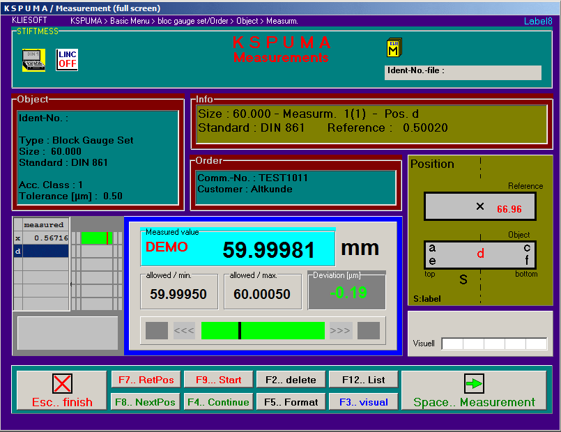 The add-on module enables efficient calibration of standard and special gauge blocs. Fully integrated with the KSPUMA system, it supports all steps of calibration from reference definition to object identification, measurement, storage and documentation. The supplementary module can also run on its own - without other KSPUMA programs. The generated results are compatible with PMREADER.
